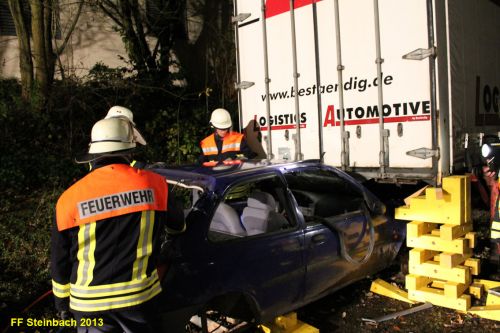 Übungsannahme war, dass ein PKW unter eine LKW-Wechselbrücke gefahren ist und der Fahrer im Fahrzeug eingeklemmt ist.